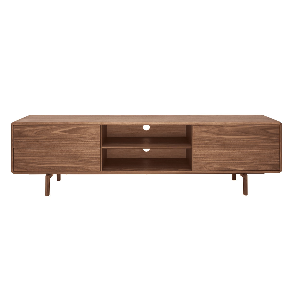 Envie d'un séjour rétro chic ? Ce meuble TV formera un superbe duo accompagné de la table basse de la même collection . Un joli canapé en velours bleu pétrole contrastera à ravir avec les tons chauds de la couleur noyer.