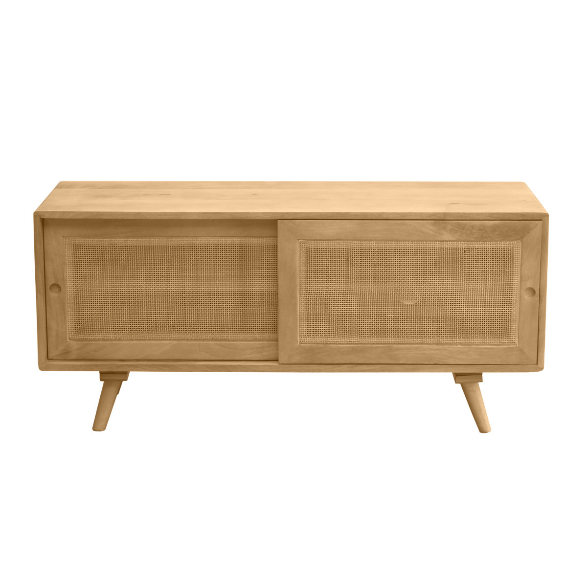 Meuble tv en bois manguier massif et cannage rotin l110 cm acange