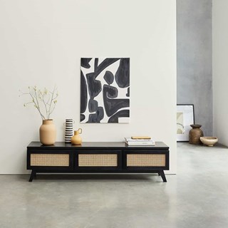 Meuble tv en mindi massif et cannage