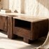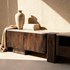Meuble TV Carola en bois de manguier et plateau en travertin, avec 2 portes, 1 niche et 1 tiroir. Design élégant et fonctionnel, parfait pour un salon raffiné.