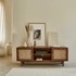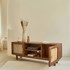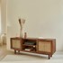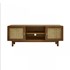 Composé en manguier massif finition noyer et cannage, ce meuble TV se veut durable et résistant dans le temps. Ce meuble TV convainc par son design unique contemporain qui s’adapte à tous les styles de déco. On apprécie ses nombreux rangements grâce à ses deux portes, ses étagères et ses deux niches. Ce meuble TV dispose d’un trou permettant de passer les câbles et les cacher.