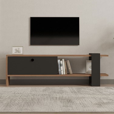 Ova meuble tv asymétrique gris anthracite avec placard aspect bois 120cm