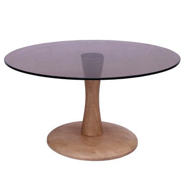 Rodo-table basse ronde d75 cm en verre fumé et bois