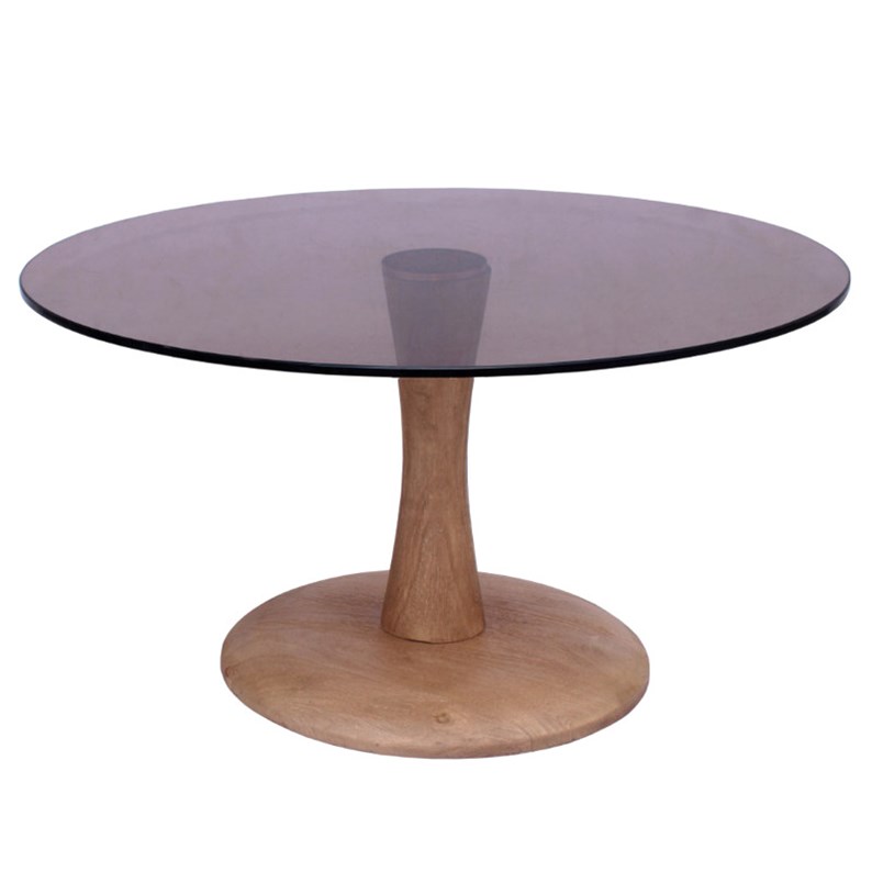 Table basse ronde D75 cm en verre fumé et bois  En savoir plus