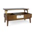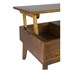 Table basse de la collection scandinave Loélie qui combine la couleur du bois et le blanc. Elle a deux tiroirs et le plateau relevable pour un résultat fonctionnel. Fabriqué artisanalement en bois de mindi.