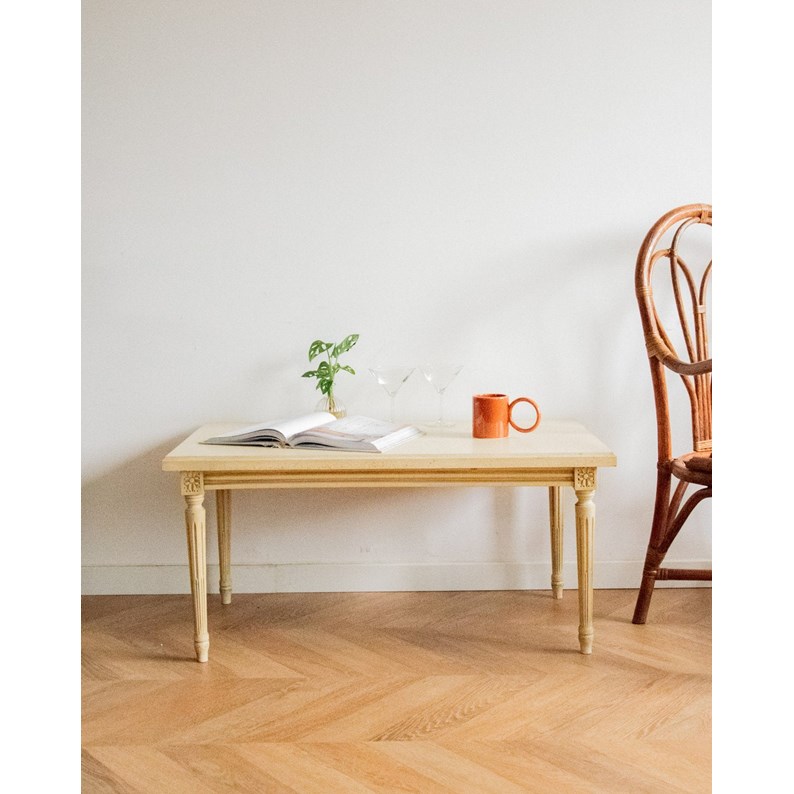 Sublimez votre salon avec cette table basse au plateau beige à effet craquelé intentionnel, qui apporte une texture subtile et une patine délicate à l'ensemble. Ses pieds en bois ornés créent un contraste chaleureux et une présence sculpturale, affirmant un style à la fois artisanal et élégant. Son gabarit allongé et son faible profil accueillent tasses, livres et objets décoratifs sans alourdir la pièce, pour une ambiance conviviale et raffinée.