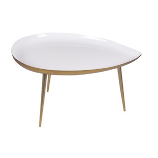 Table basse en acier laqué blanc et doré l80 cm drop