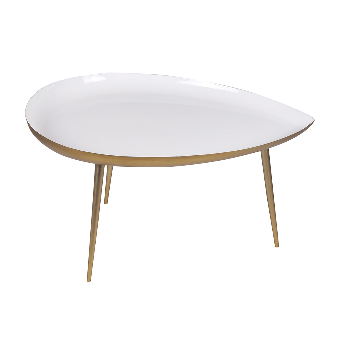 Sa ligne étonnante en forme de goutte nous transporte vers une destination qui nous était encore inconnue. On y découvre un magnique travail artisanal , un jeu de matières unique et un mélange de teintes éclatantes. La table basse DROP est comme un petit trésor, c'est la pièce précieuse du salon. Avec la finition laquée de son plateau et la peinture dorée de sa structure en acier , elle brille de mille éclats. Cette table goutte au charme fou donnera un vrai esprit authentique à l'espace autour du canapé . Dépaysement garanti !