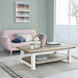 Cette table basse en bois de pin recyclé apportera une touche naturelle et lumineuse à votre salon. Equipée d'un double plateau, elle est donc fonctionnelle et esthétique. Caractéristiques : Matière : Pin recyclé - Couleur : Bois naturel et blanc - Hauteur : 45 cm - Longueur : 140 cm - Largeur : 80 cm - Poids : 37 kg - Garantie : 5 ans - Montage : Livrée montée. Les + : Esprit bord de mer – Finition Patine Blanchie - Pin recyclé.