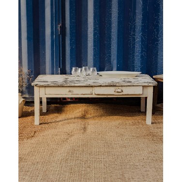 Ajoutez cette table basse en bois poncée dans des tons blanc et noir, au dessin bicolore qui apporte un charme naturel. Sa surface généreuse accueille plateaux, livres et moments conviviaux, tandis que ses deux tiroirs offrent un rangement discret pour télécommandes et petites affaires. La finition poncée révèle la matière avec une texture douce et un charme graphique qui s'intègre autant à un intérieur contemporain qu'à un salon plus chaleureux. Quelques traces du temps présentes.