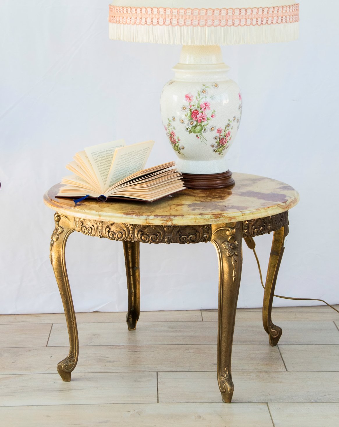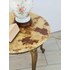 Sublimez votre salon avec cette table basse ronde au plateau en marbre aux nuances chaudes de marron, beige et jaune, posée sur un piètement en laiton doré finement gravé de délicats motifs floraux. Sa silhouette élégante mêle éclat métallique et matière minérale pour une atmosphère à la fois raffinée et accueillante, idéale au centre d'un espace convivial pour accueillir tasses et livres. Le plateau en marbre n'est pas fixé, facilitant sa manipulation ou son remplacement. Très bon état.