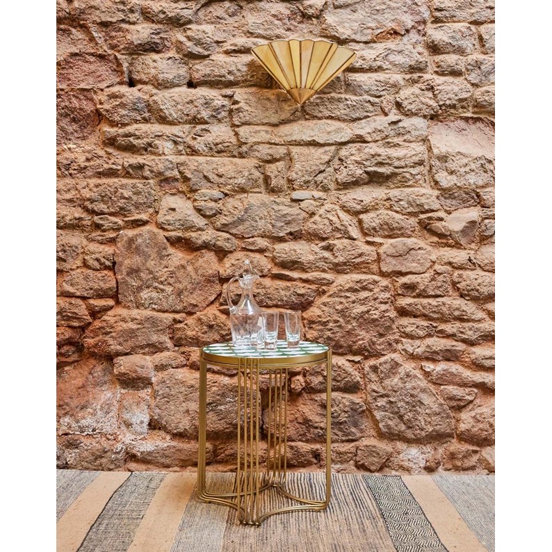 Invitez cette table basse ronde au style art déco, mêlant la chaleur du laiton et la finesse de la céramique verte et blanche. Sa surface contrastée accueille tasses, livres et objets décoratifs tandis que la structure singulière, quatre pieds composés de tiges qui se rejoignent, dessine une silhouette aérienne et graphique. Élégante et contemporaine, elle installe une ambiance raffinée dans le salon, parfaite pour souligner une décoration soignée sans en faire trop.