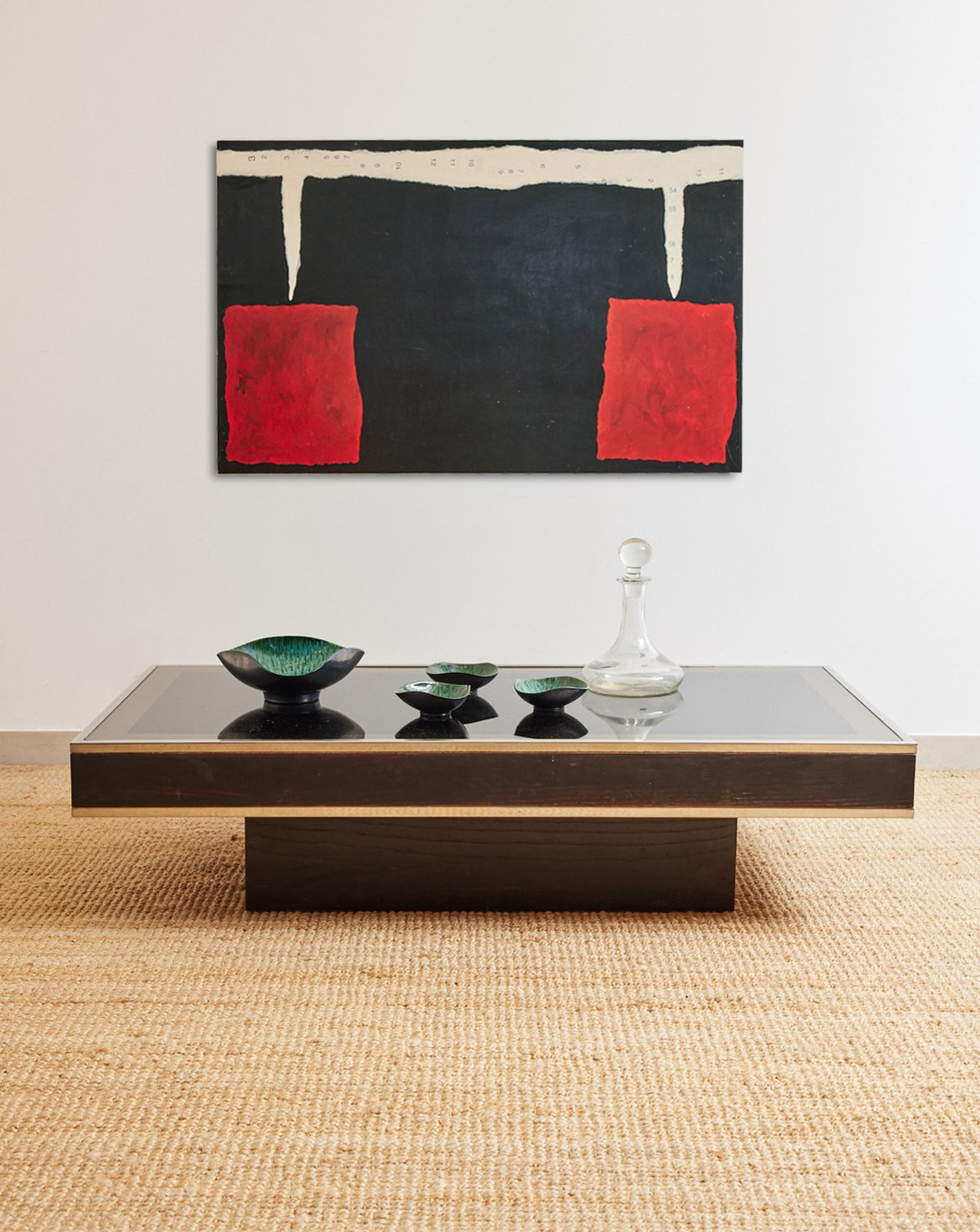 Sublimez votre salon avec cette grande table basse vintage en verre fumé, incarnation du design italien des années 70. Son plateau généreux en verre teinté repose sur un piètement sculptural qui affirme une présence graphique sans surcharge. Conçue pour accueillir livres, objets et moments partagés, elle dialogue avec une décoration contemporaine ou rétro. Les lignes rétro et la douceur du verre filtrent la lumière pour créer une ambiance chaleureuse et légèrement feutrée.