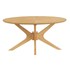 Son piètement croisé en bois massif assure une stabilité irréprochable et une solidité durable. Les lignes géométriques de la base contrastent subtilement avec la douceur du plateau, donnant à la table une allure sculpturale digne des intérieurs les plus sophistiqués. Ce mélange entre structure robuste et finesse visuelle en fait une pièce forte de votre décoration.