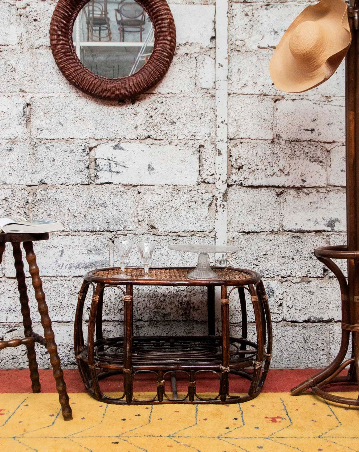 Découvrez cette table basse arrondie en rotin foncé, dont la silhouette douce et les fibres tressées apportent une présence chaleureuse et texturée au salon. Son double plateau, avec un niveau supérieur canné, propose un bel équilibre entre surface d'exposition et rangement discret pour livres et objets, tandis que ses proportions généreuses s'adaptent naturellement à un coin canapé. Elle insuffle une ambiance bohème et élégante, parfaite pour des intérieurs contemporains ou lumineux.