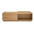 Meuble gain de place, cette table basse avec rangements , renferme de part et d'autre deux niches ouvertes (L57.3 x P18.5 x H24.2 cm) ainsi que deux grands tiroirs (dimensions intérieures : L52.9 x P33.6 H13.2 cm). De quoi ranger sans tout cacher ! Pour parfaire l'esthétique épurée de ce meuble deux en un, les caissons sont dépourvus de poignées.
