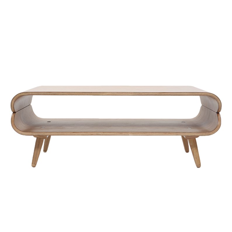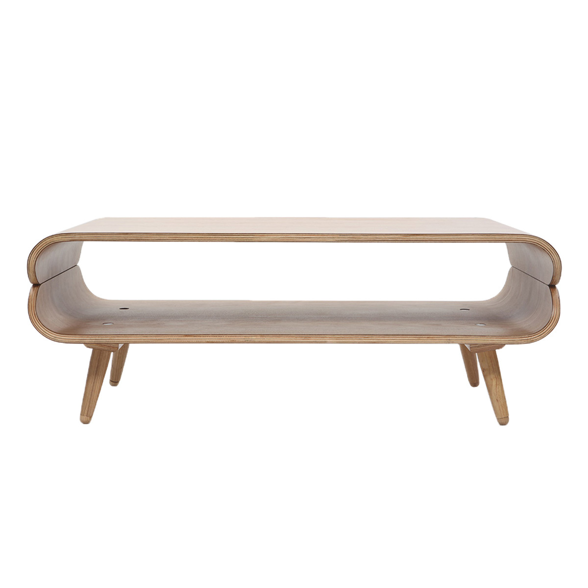 D'inspiration rétro, son design tout en rondeur et sa couleur bois clair dû à son placage frêne apporteront une touche d'authenticité à votre salon. Idéale pour donner du cachet à votre décoration d'intérieur, cette table basse en bois se révèle également être une pièce ultra pratique au quotidien. Elle bénéficie d'un espace de rangement astucieux : une grande niche pouvant accueillir des livres, des magazines ou de petits objets qui deviendront une décoration à part entière.