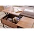 Il vous suffit de relever le plateau de cette ingénieuse table basse pour découvrir un beau coffre de rangement (dimensions intérieures L55.5 x P42.5 x H16 cm). Cette table est également dotée d'une niche ouverte sur sa partie gauche (L36.5 x P50 x H16 cm).