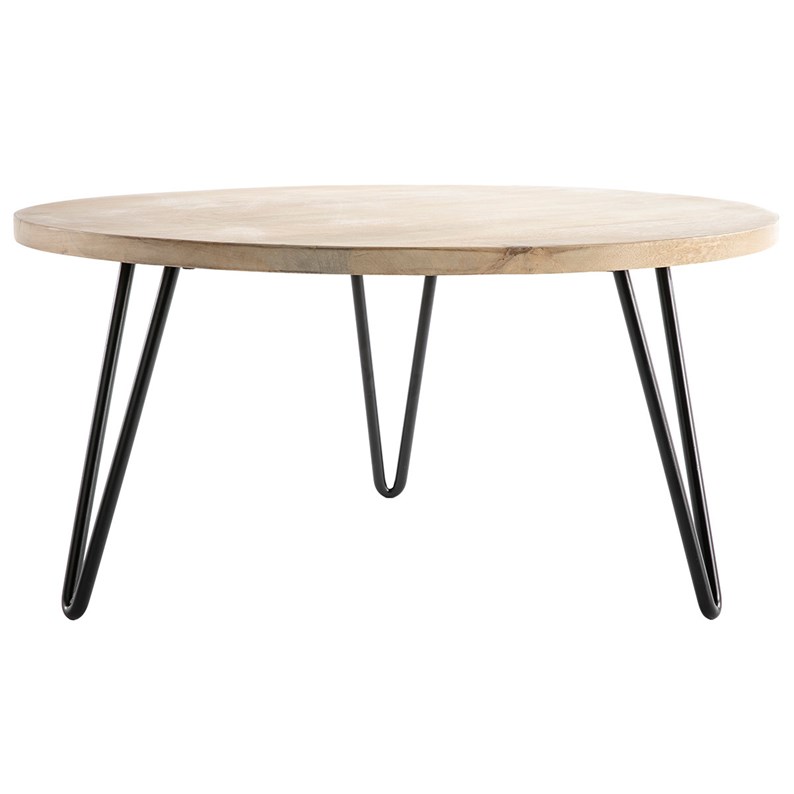 Table basse ronde bois manguier massif et métal noir d80 cm vibes