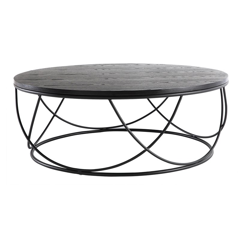 Table basse ronde bois noir et métal noir d80 cm lace