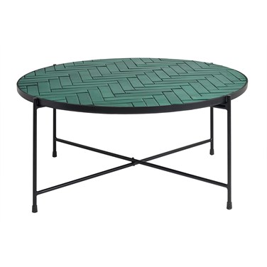 Table basse ronde en céramique vert foncé et métal noir d80.5 cm kotta