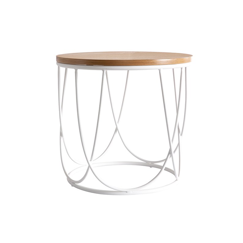 Table d'appoint ronde bois clair chêne et métal blanc d42 cm lace