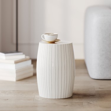 Table d'appoint ronde en métal blanc rayé d26 cm - nello