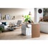 La table haute façon îlot MAX est un meuble pratique à l'esthétique soignée. Ses finitions blanc mat et chêne en font une pièce de mobilier moderne et chaleureuse. On l'accompagne de tabourets de bar d'une hauteur de 65 cm pour profiter d'un espace convivial autour de la cuisine.