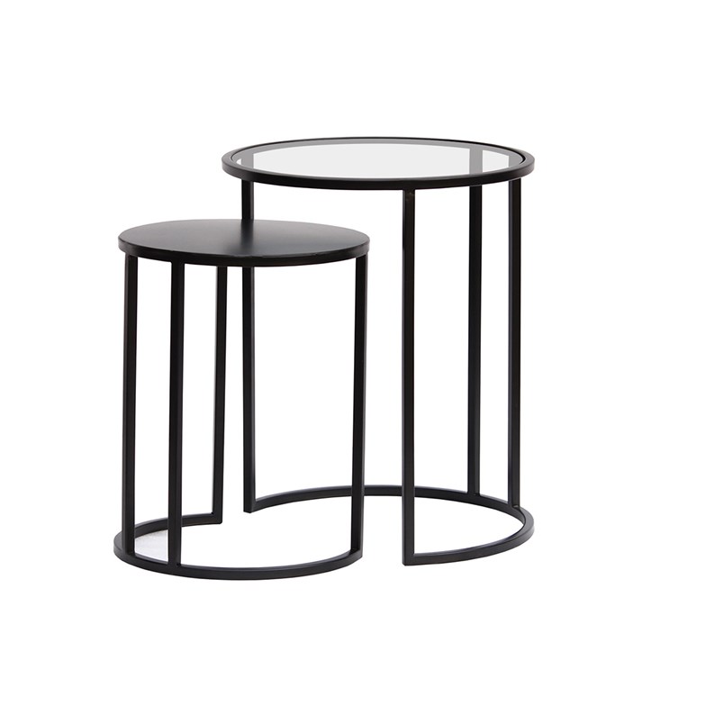Tables d'appoint gigognes en verre trempé et métal noir tahl