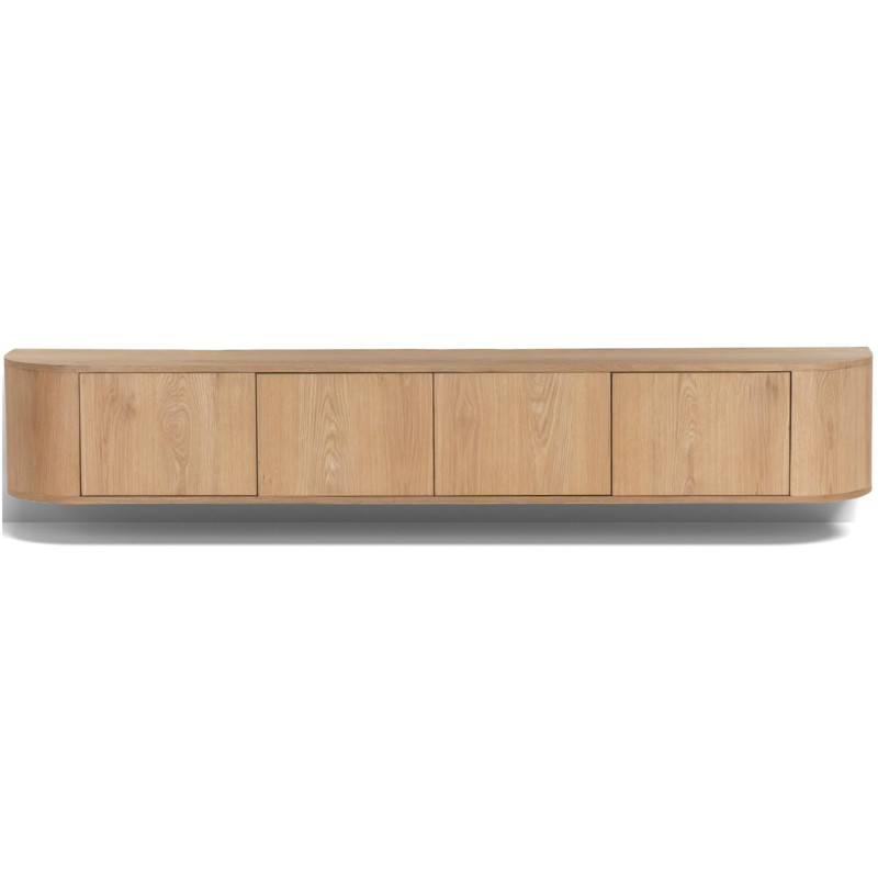 La collection TIAGO est synonyme de design moderne et de finition raffinée. Les formes élégantes et arrondies associées au bois de placage en chêne véritable créent un look luxueux et stylé. Idéale pour ceux qui aiment un intérieur puissant et atmosphérique avec un caractère contemporain. Meuble TV mural à suspendre (livré sans fixations, à adapter selon le support) présenté en Chêne, 220 cm de largeur et 4 portes. Livraison dans la pièce de votre choix, reprise des emballages sur demande. L'installation des éléments muraux doit être effectuée avec des fixations adaptées à votre support sur les conseils d'un proffessionel, et s'effectue sous l'entière responsabilité du client. Visuels non contractuels. Chaque pièce est unique. Les nuances de teintes dues à l'assemblage de plusieurs lames de bois réagissant différemment à l'application des laques protectrices, les variations de couleur finales (plus claires ou plus foncées), les éventuelles marques naturelles, noeuds ou aspérités inhérents à l'emploi de matériaux tels que le bois, les marbres, le métal brut ne constituent pas un défaut tel que définis dans nos conditions générales de vente. Les photos des tables déclinées en plusieurs dimensions peuvent ne pas correspondre à la réalité.