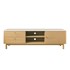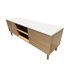 Côté agencement, ce meuble TV accueille deux tiroirs, un placard et deux niches ouvertes, parfaites pour organiser box, consoles et autres équipements multimédia. A l'arrière, deux passages intégrés permettent une gestion simple et discrète des câbles.