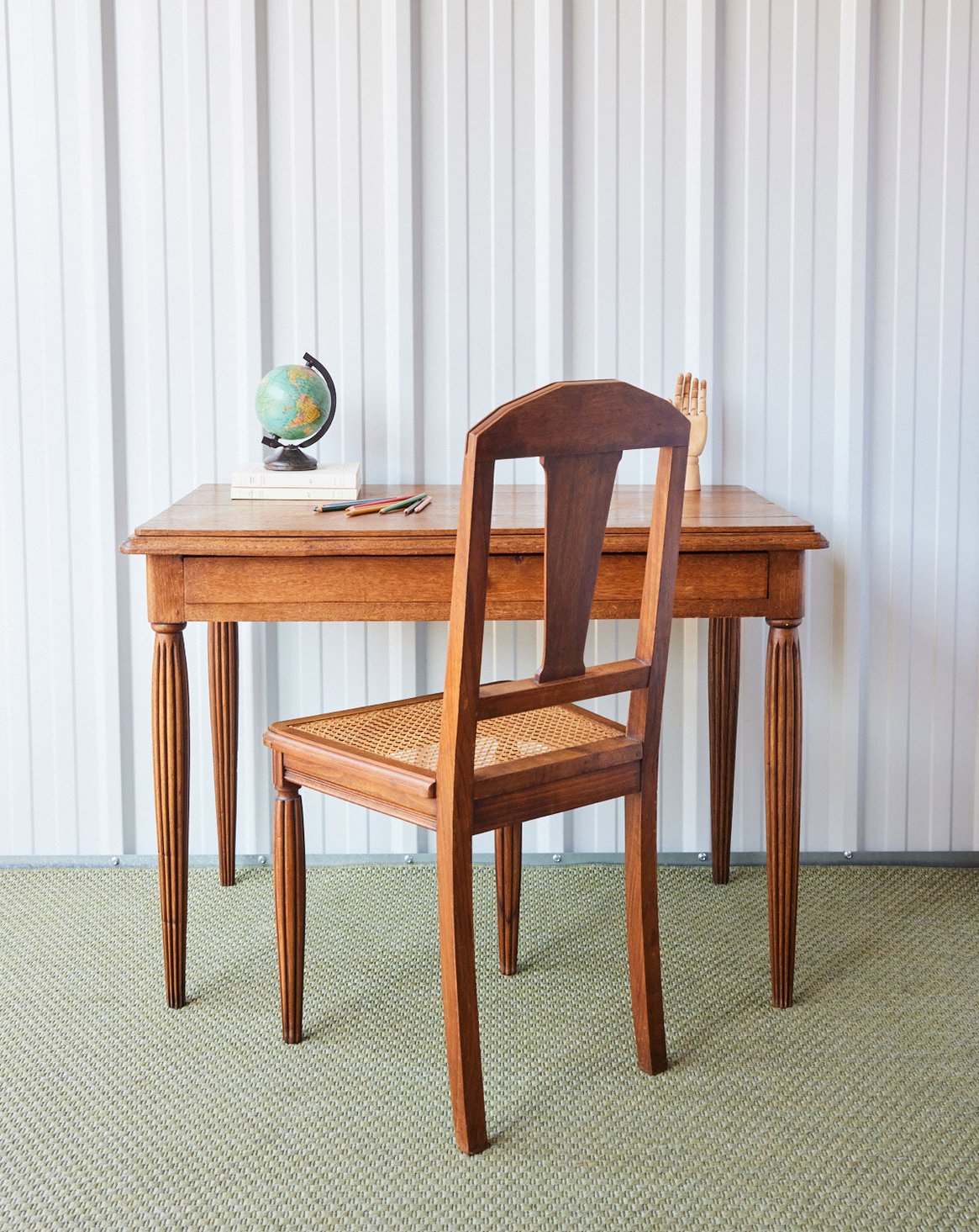 Tout commence avec la « bure », ce drap de laine brun et épais qui recouvrait les tables des moines copistes pour protéger leurs précieux manuscrits. Par extension, la table elle-même a fini par prendre le nom du tissu qui la recouvrait : le bureau. Contrairement au secrétaire, il se définit par son large plateau fixe et son piétement apparent, offrant un espace de réflexion sans artifice. Et aussi appelé « bureau plat », il reste la pièce maîtresse pour ancrer un espace de travail avec caractère.