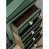 Adoptez ce bureau secrétaire style Davenport, repeint en vert et noir, qui révèle une silhouette classique grâce à ses montants sculptés et ses quatre tiroirs munis de boutons en céramique blanche. Le plateau s'ouvre pour offrir un espace de travail organisé, complété d'un long compartiment sur la partie haute et de sous-mains en similicuir vert, soulignant son usage quotidien et son charme patiné ; ses proportions en font une pièce idéale pour un coin bureau ou une entrée raffinée. Légères traces du temps présentes, similicuir légèrement décollé sur ses bordures.