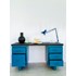 Apportez une touche industrielle et contemporaine avec ce bureau récemment repeint en bleu et noir, où la structure métallique rénovée gagne en robustesse grâce à un traitement antirouille. Son plateau en résine effet cuir conjugue esthétique et confort pour l'écriture ou le travail informatique, offrant un bel espace de travail, tandis que quatre tiroirs intégrés offrent un rangement bien proportionné pour dossiers et fournitures. Idéal pour un bureau à domicile ou un atelier au style affirmé, il dégage une allure sobre et durable.