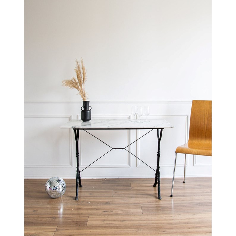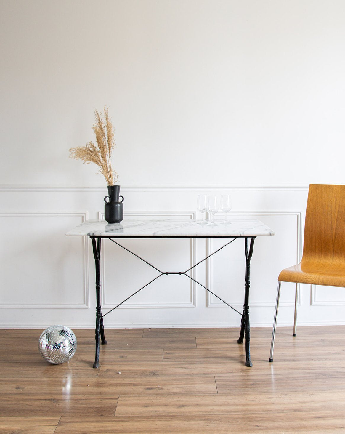 Découvrez cette élégante table de bistrot, idéale pour apporter du caractère à votre intérieur ou votre terrasse. Sa structure en fonte assure stabilité et style, tandis que le plateau en marbre a été soigneusement hydrofugé pour une finition propre et protégée. Le marbre, rénové, révèle toute sa beauté naturelle. Dotée de deux pieds latéraux, elle allie équilibre et allure classique. Un charme intemporel pour vos repas ou vos pauses café de 2 à 4 convives.
