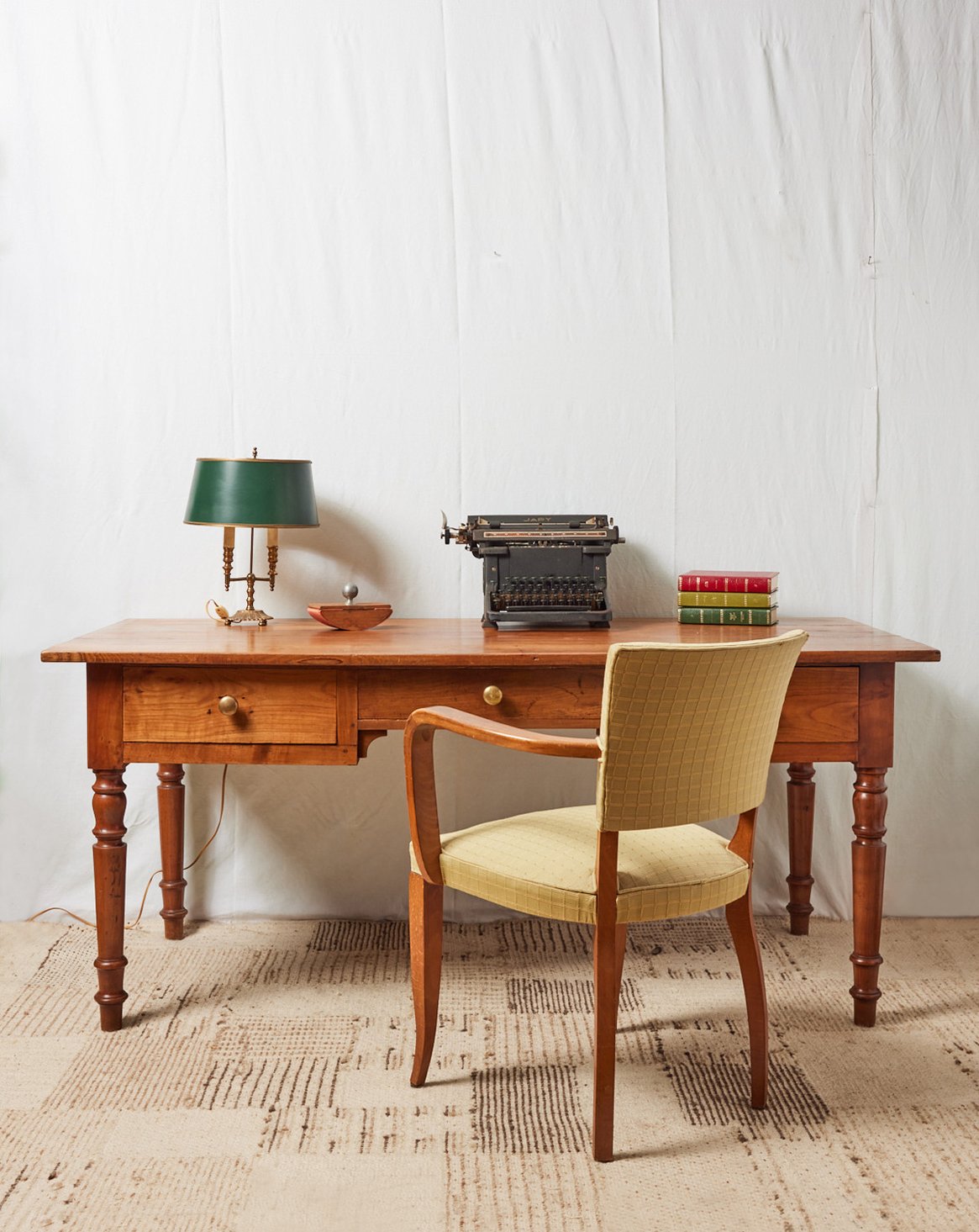 Apportez une touche campagne élégante avec ce bureau en bois, conçu pour offrir un coin de travail chaleureux et fonctionnel. Ses deux grands tiroirs procurent un rangement généreux pour dossiers et classeurs, tandis que le petit tiroir central accueille stylos et accessoires du quotidien, les poignées rondes en laiton soulignent le caractère et apportent une note raffinée. Sa silhouette équilibrée trouve sa place aussi bien dans un salon que dans une chambre ou un bureau dédié au télétravail.