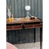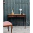 Sublimez votre espace de travail avec ce bureau en bois foncé, doté d'un plateau en cuir et d'un liseré doré qui souligne ses lignes classiques et élégantes. Ses deux tiroirs verrouillables avec clés offrent un rangement discret et ordonné, idéal pour un bureau d'appoint ou une chambre, tandis que ses proportions équilibrées maximisent la surface sans encombrer la pièce. Le mariage du cuir et du bois crée une atmosphère chaleureuse et raffinée. Légères traces du temps présentes.