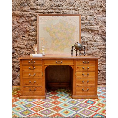Découvrez ce bureau en pitchpin, dont la teinte chaleureuse et le veinage marqué apportent une allure authentique et sobre. Équipé de poignées discrètes, de tiroirs pratiques et de deux grands plateaux, il propose une double surface de travail idéale pour organiser documents et matériel tout en libérant l'espace. Sa silhouette équilibrée s'intègre aussi bien dans un atelier créatif qu'un bureau à domicile, offrant une atmosphère inspirante et fonctionnelle.