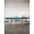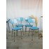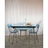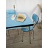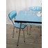 Apportez une touche rétro et colorée à votre cuisine avec cet ensemble table et quatre chaises en Formica bleu, au revêtement lisse et résistant. La table, pensée pour accueillir confortablement quatre à six convives, en déployant les rallonges intégrées, comporte deux tiroirs opposés — dont l'un aménagé en compartiments pour couverts — pour un rangement pratique et discret. Sa silhouette simple et fonctionnelle évoque une atmosphère conviviale et lumineuse, idéale pour petits déjeuners et repas quotidiens. Légères traces du temps présentes : un petit éclat sur le dossier d'une chaise et micro rayures sur plateau et pourtour de la table.
