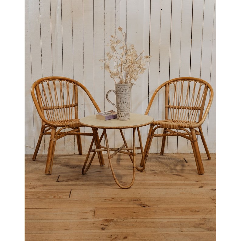 Ensemble de table et de deux fauteuils en rotin n°21