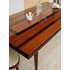 Sublimez votre salle à manger avec cette grande table en bois laqué, sélectionnée au Mondial de l'Ameublement en 1960, qui impose sa présence sans ostentation. Son plateau aux nuances de bois clair et bois foncé, rehaussé de détails géométriques et d'un contour strié, s'appuie sur des pieds fuseaux élancés pour un équilibre élégant entre modernité et tradition. Sa généreuse proportion invite aux repas conviviaux et mises en scène chaleureuses. Légères traces du temps présentes.