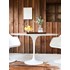 Sublimez votre salle à manger avec cette table ronde en marbre clair, inspirée du style Saarinen de Knoll par son pied tulipe iconique. Sa silhouette épurée et sa large surface invitent à la convivialité, idéale pour réunions familiales ou repas entre amis. Le marbre apporte une luminosité douce et une présence sculpturale, tandis que le piètement en fonte d'aluminium recouvert de Rilsan blanc assure stabilité et élégance minimaliste. Parfaite au centre d'un séjour contemporain ou d'un coin repas raffiné. Bon état vintage. Parfaite pour 4 à 6 convives.