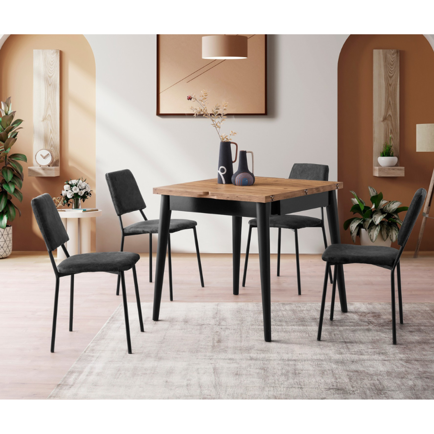 Pallini table à manger extensible 4 personnes style industriel bois et noir 80 c