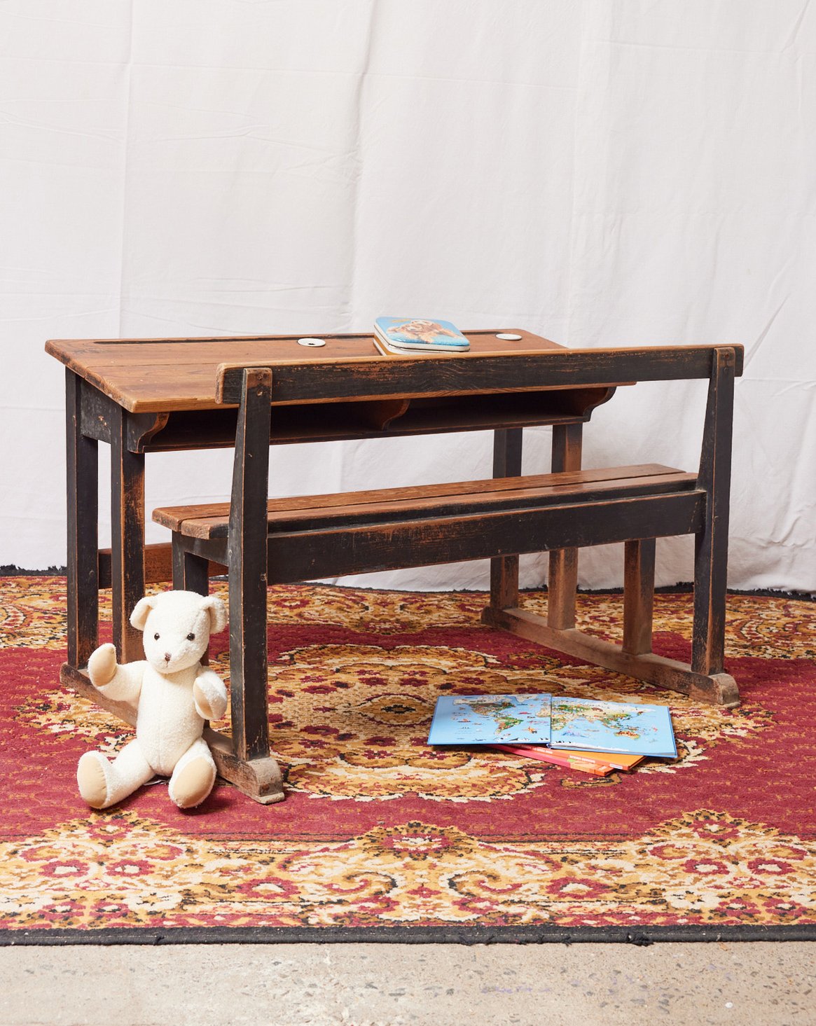 Découvrez ce pupitre d'écolier doté de ses encriers d'origine, une pièce pleine de caractère qui évoque l'atmosphère feutrée des salles de classe d'autrefois. Sa structure en bois patiné et son plateau incliné offrent un espace d'écriture convivial ainsi qu'un rangement discret pour cahiers et crayons. Il se glisse avec élégance dans un intérieur contemporain pour apporter une touche rétro ou comme bureau d'appoint dans un coin lecture. L'allure sobre et narrative de ce pupitre invite au souvenir et à l'inspiration.