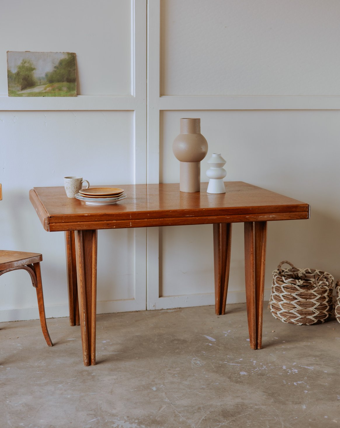 Invitez à votre table cette robuste pièce en bois pensée pour six à huit convives, dont la longue silhouette s'équilibre par des pieds arrondis au style chaleureux et contemporain. Pratique au quotidien, elle s'allonge grâce à deux rallonges qui se logent facilement et jouent avec des teintes légèrement contrastées entre plateau et extensions. Sa finition naturelle met en valeur le veinage du bois et crée une ambiance conviviale autour des repas. Multiples accrocs présents.