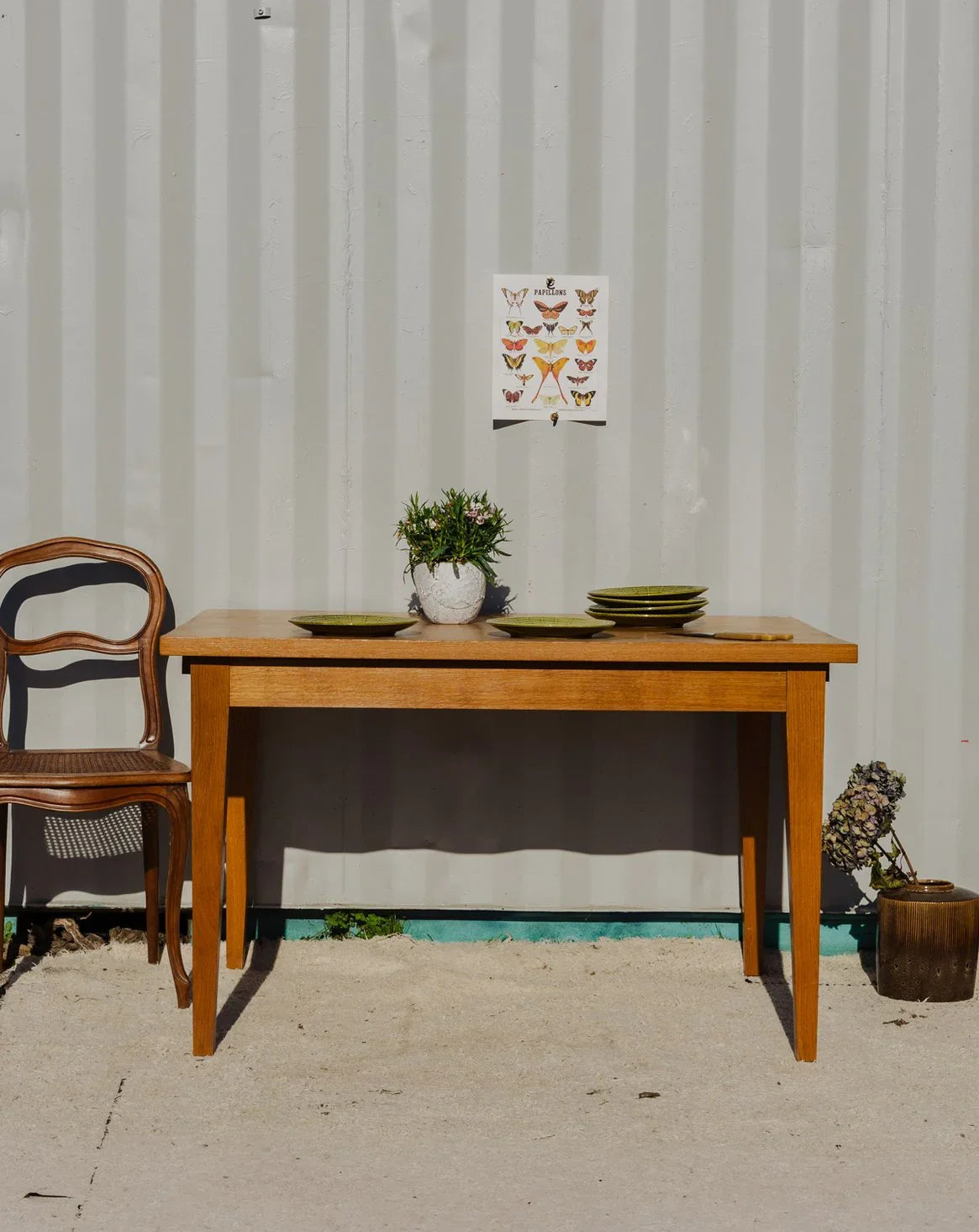 Découvrez cette table à manger en bois, au design chaleureux et aux proportions pratiques, idéale pour créer une ambiance conviviale lors de repas en famille ou entre amis. Pensée pour accueillir confortablement 4 à 6 convives, elle se déploie pour recevoir jusqu'à 8 personnes grâce à des rallonges astucieusement rangées sous le plateau, et propose un tiroir latéral pratique pour les couverts ou serviettes. Sa finition naturelle insiste sur une élégance discrète. Quelques traces du temps présentes.