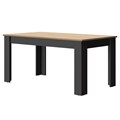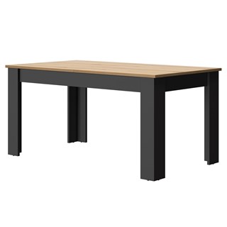 MANCHESTER TABLE RECTANGULAIRE Plateau et Allonge : panneaux de particules revêtus papier imitation Chêne Helvezia. Pieds et ceinture : panneaux de particules revêtus papier Noir. Longueur table sans allonge : 160 cm. Allonge de 40 cm.
