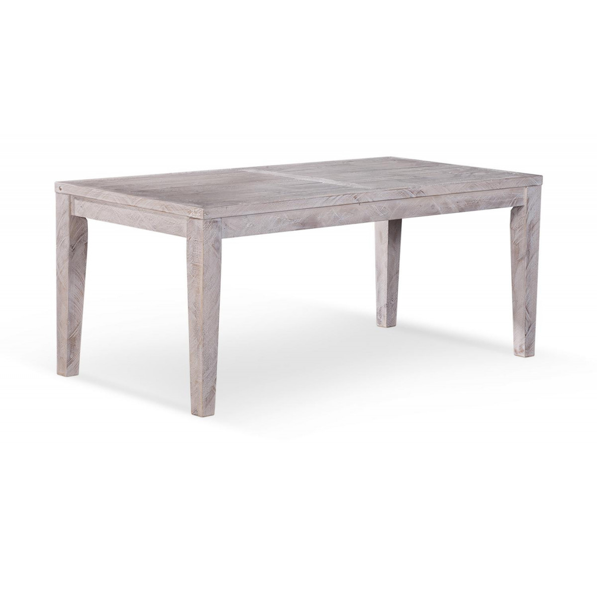 On apprécie beaucoup le plateau de cette belle table en bois grise artisanale. Ses dimensions généreuses (180 centimètres par 90 centimètres), sa teinte et son bois travaillé le rendent sublime et authentique.