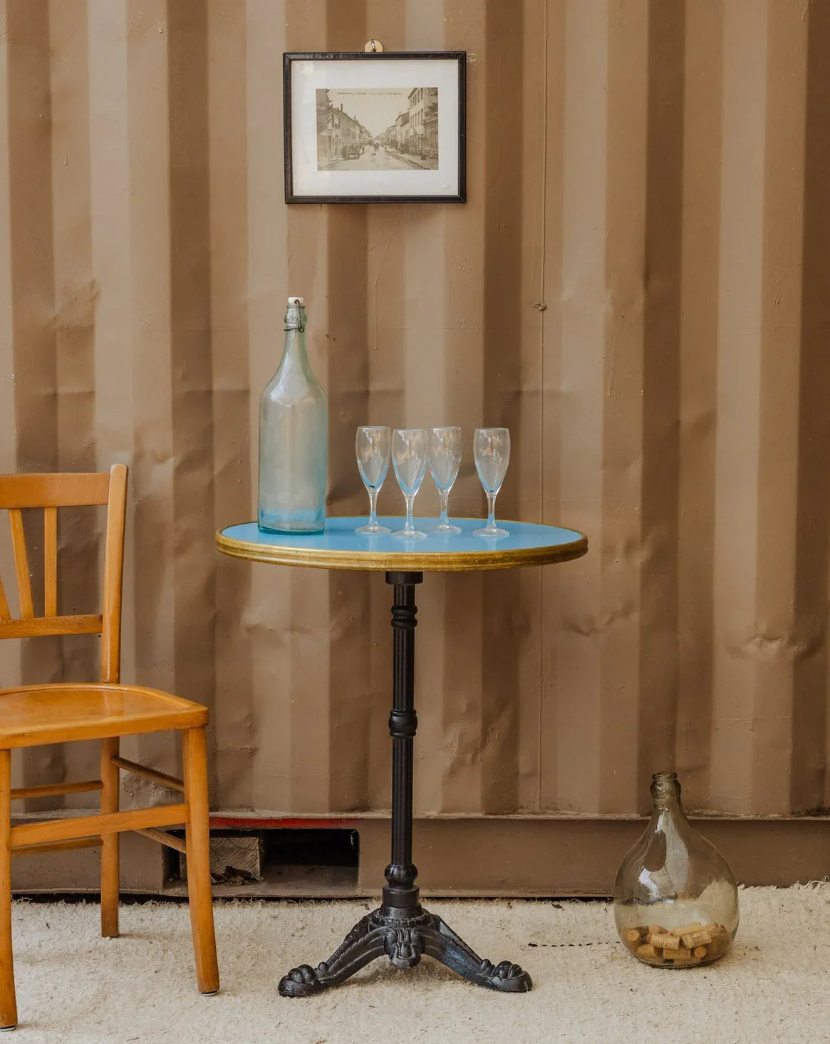 Table à manger bistrot bleue et dorée n°117