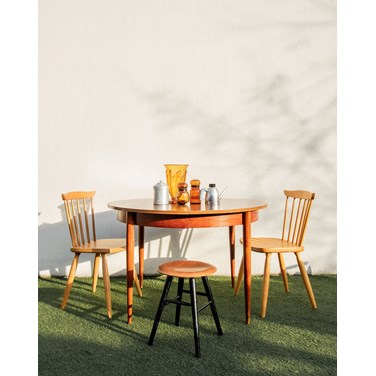 Offrez à votre salle à manger cette table scandinave des années 60 en teck et palissandre, aux courbes organiques et à l'allure raffinée. Pensée pour quatre convives et extensible jusqu'à six grâce à ses rallonges papillon intégrées, elle associe la chaleur des bois exotiques à une silhouette épurée pour instaurer une ambiance conviviale et élégante. Discrets petits éclats visibles sur la tranche.